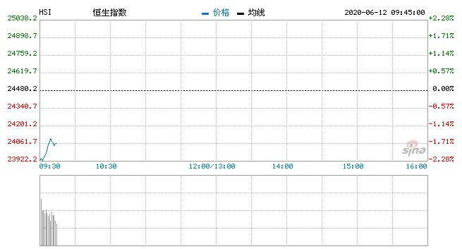 【香港商报网讯】6月12日,受外围市场影响,香港恒生指数大幅低开。今日港股开盘,恒指低开2.29%,报23920.70点,蓝筹股全线下跌。国企指数跌1.9%;红筹指数跌1.97%。