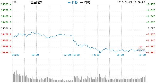 【香港商报网讯】恒指全天震荡下行,早盘低开1.28%报23991点,开盘后大市跌幅迅速收窄,盘中最高跌幅不足60点,高见24242点。午后恒指盘中跳水下挫,尾盘前持续走低,盘中最低跌近620点,低见23684点,创近两周新低。