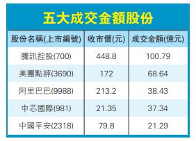 科技股昨日表現亮眼,騰訊(700)升3.5%,收市報448.8元。美團(3690)昨日再創新高,收市報172元,升7.8%,市值已破萬億元。小米(1810)升3.5%,收市報12.9元。阿里巴巴(9988)升3.1%,收市報213.2元。網易(9999)升3.7%,收市報129.7元。