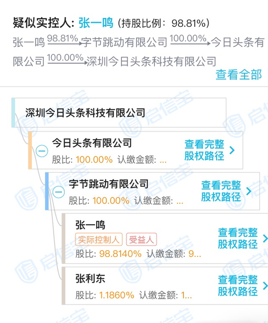 資料顯示,深圳今日頭條科技有限公司成立於2017年12月,註冊資本12億元,是字節跳動有限公司的間接子公司。