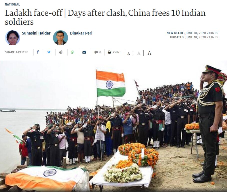【香港商报网讯】当地时间18日晚,据《印度报》(The Hindu)引述印度军方人士消息,当地时间18日下午5时左右,中方向印度释放10名印军战俘,当中包括1名中校及3名少校。