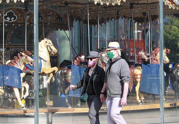6月15日,人们走过美国纽约一处公园内关闭的娱乐设施。新华社