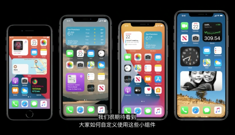 苹果对负一屏的组件进行了优化。用户可以将负一屏中的组件拖动到主屏幕上,并且每个组件都可以有不同的显示形式。桌面组件可以智能显示,比如早晨显示闹钟,白天显示日程。