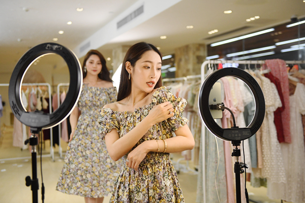「首屆直播節(中國‧廣州)」正式啟動,UUS 國際服裝城內主播直播銷售女裝。本次直播節直播場次超過20萬場。中新社