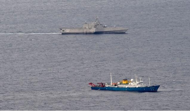 “吉福兹”号濒海战斗舰从中国“海洋四号”远洋科学考察船附近驶过