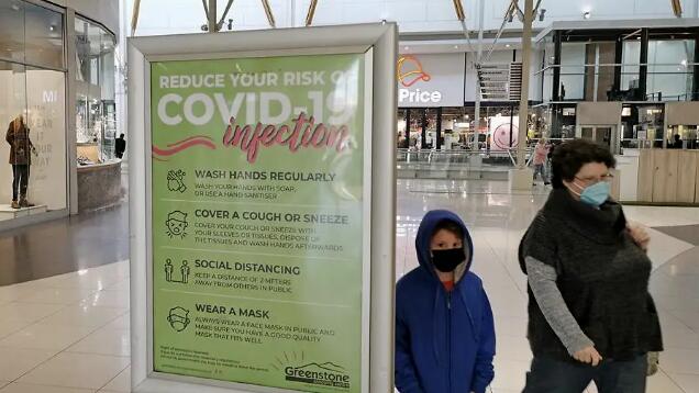 6月22日,南非约翰内斯堡一家商场内摆放着提醒人们勤洗手、戴口罩和保持社交距离的提示牌。新华社