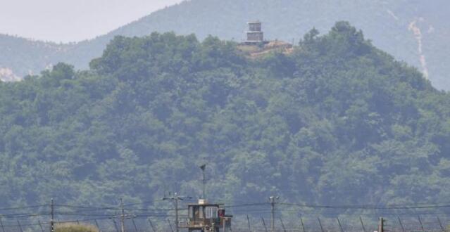 资料图:当地时间6月16日,朝韩边境上的韩国哨所(下)与朝鲜哨所(上)。