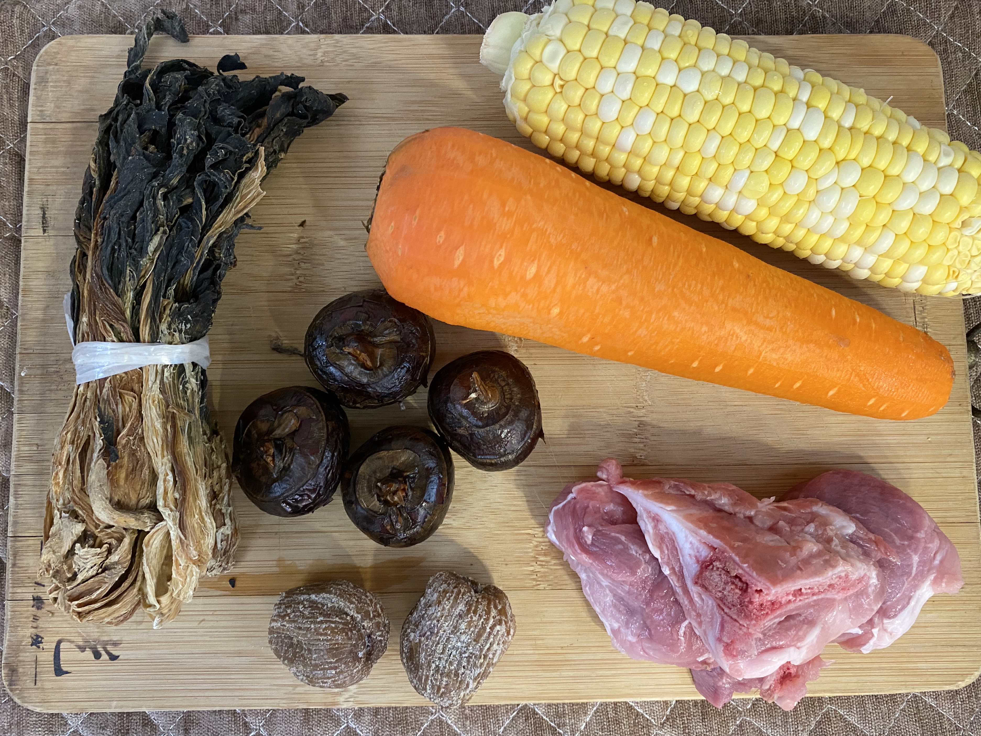 材料:豬骨500克、菜乾 50克、紅蘿蔔1根、粟米2根、馬蹄100克、蜜棗2顆。