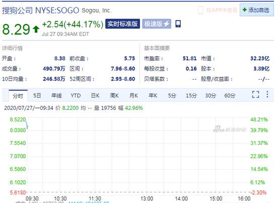 【香港商报网讯 】综合内地媒体报道,腾讯有意以9美元/ADS的价格收购搜狗剩餘股份,搜狗美股盘前涨40%。另据界面新闻消息,搜狗公司CEO王小川回应腾讯收购:感谢腾讯公司对搜狗公司价值以及技术能力、产品创新能力的认可。接下来会对相关事宜进行认真的讨论和衡量,让搜狗能够持续为用户创造更大的价值。