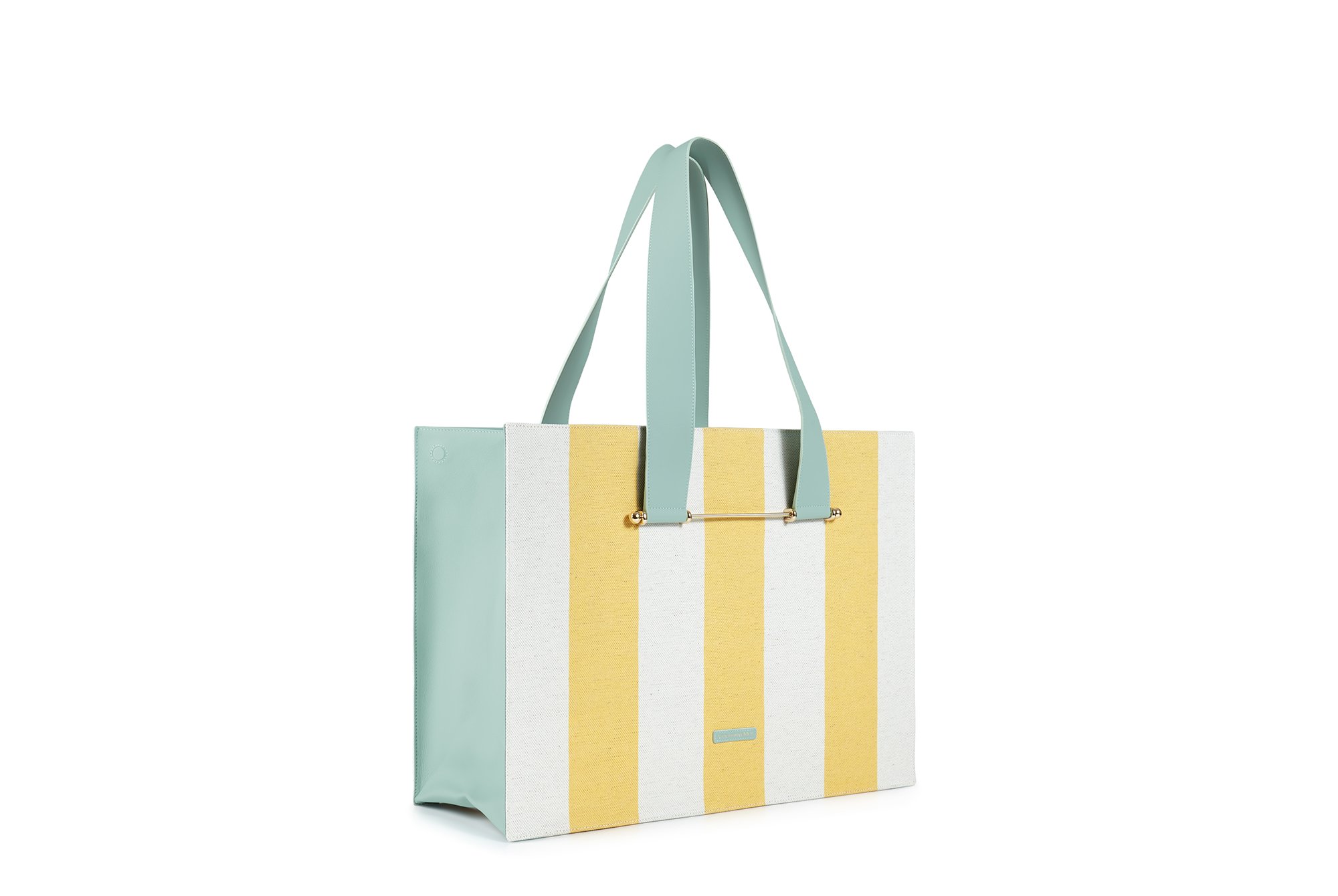 因「帶貨女王」英國梅根王妃多次於公開場合使用Strathberry手袋,令這個英國設計品牌人氣急升,主打手工藝和奢華的設計路線,以低價格打造高級品牌的品質。品牌新季系列的帆布Tote Bag,與倫敦奢侈品牌時尚設計師XU ZHI合作,結合了柔軟皮革的質感和耐用的機織面料,糖果色、條紋印花的搭配,帶有沿海氣息,休閒而不失奢華感覺,夏日風情滿瀉。
