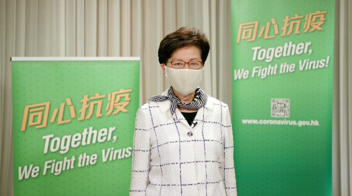 林鄭月娥在短片中呼籲市民齊心抗疫。