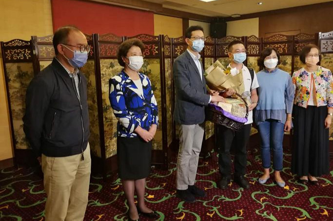 在欢迎仪式上,工联会主席吴秋北等代表向7名队员献上鲜花和花篮,在当中的卡片上写着「临危驰援 无限感恩 热烈欢迎」,对支援队表示感谢。