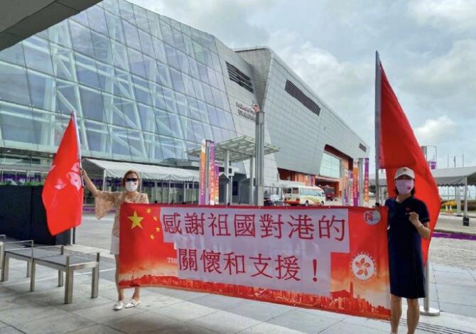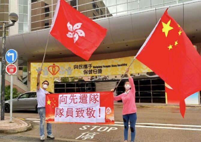 在香港亞洲國際博覽館「方艙醫院」外,有市民手持五星紅旗和香港特別行政區區旗,舉着標語歡迎率先趕來援助的內地「先遣隊」隊員。還有市民在「方艙醫院」外大喊:「多謝祖國,多謝祖國的醫療團隊,歡迎來香港。」