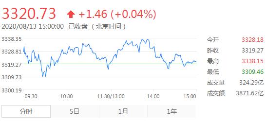 截至今日收盘,沪指涨0.04%,报3320.73点,成交额为3871.62亿元(上一交易日成交额为4807.31亿元);深成指跌0.13%,报13291.32点,成交额为4943.30亿元(上一交易日成交额为6029.30亿元);创指跌0.49%,报2622.64点。