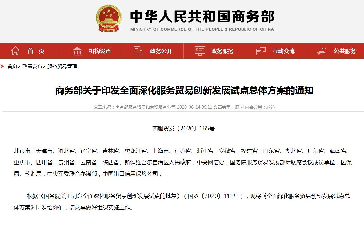 【香港商报网讯】商务部今日发布关于印发《全面深化服务贸易创新发展试点总体方案》的通知。(下称《方案》)