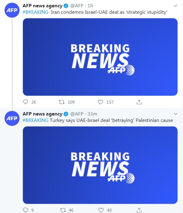 与此同时,土耳其外交部14日也在一份声明中谴责阿联酋「背叛了巴勒斯坦以满足其狭隘的利益」。声明称,「历史和居住在该地区人们的良心永远不会忘记,也绝不会原谅这种虚伪的行为。」