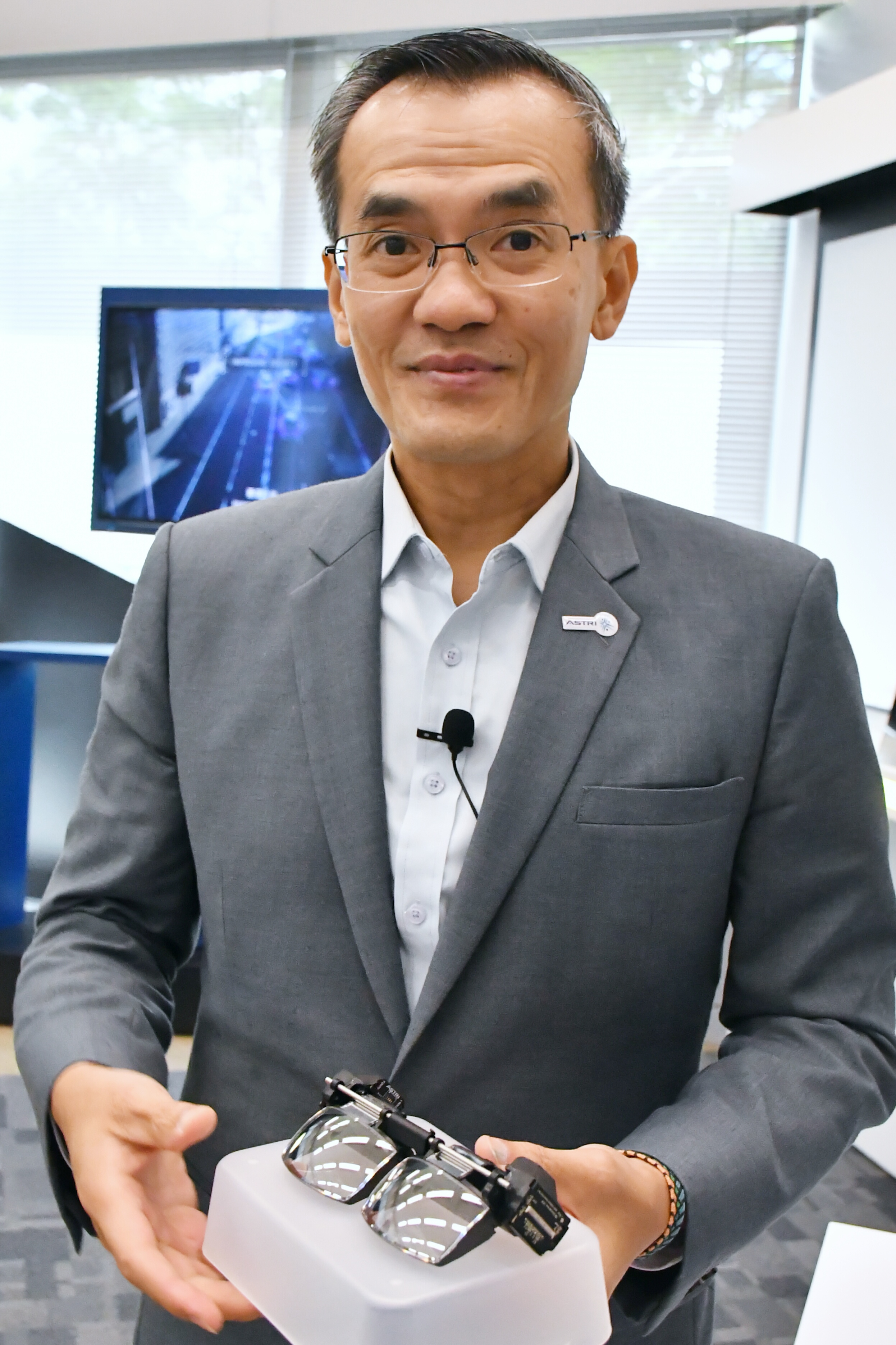 試想像未來戴上虛擬實境頭盔後,就能如置身球場內一樣,並在場內最佳位置、以最佳視野欣賞球賽,感受身臨其境的狂野氣氛。又或在進行遙距會議時,員工只需要進入VR會議室就能開會,VR還能延伸到教育訓練、智慧醫療等應用領域。應科院亦推出4K2K AR/VR頭戴式顯示器,顯示器的水平解析度達到4000像素、而垂直解析度達到2000像素的微小輕巧AR/VR眼鏡。眼鏡使用智能光學技術,將傳感與顯示融合為一,具有感應功能,以賽車為例,以用家在不同賽道的反應和軌迹,分析那是初哥還是老手,並給予訓練建議。周憲本表示:「目前眼鏡可以透過掃描瞳孔進行身份認證,希望未來配合5G的數據傳輸和實時影像,能夠在擴增實境中用眼來控制,眼睛一瞥就可以像滑鼠一樣點擊畫面,例如去旅行看路牌用AR眼鏡翻譯、在工廠中看到貨物即能顯示貨存情況,又或踏入餐廳時戴上AR眼鏡看菜單會即時呈現餐點影像等,相信未來還能革新更多應用場景。」