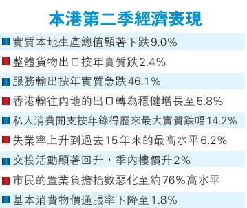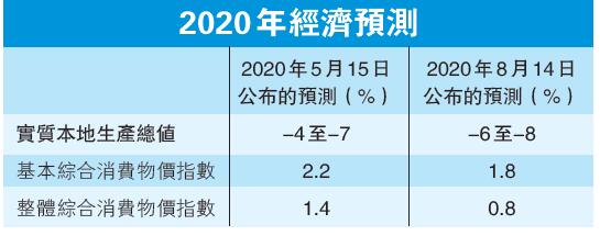 港府昨發表半年經濟報告和第二季度的本地生產總值修訂數字。由於本地疫情在第二季後期趨於緩和,加上內地經濟反彈有助紓緩貨物出口的下行壓力,香港經濟在第二季後期出現回穩迹象。經季節性調整後,按季比較實質本地生產總值繼上一季錄得5.5%的紀錄跌幅後,在第二季微跌0.1%。私營機構分析員的最新全年實質GDP增長預測介乎收縮4.7%至8.5%,平均約收縮6.6%。