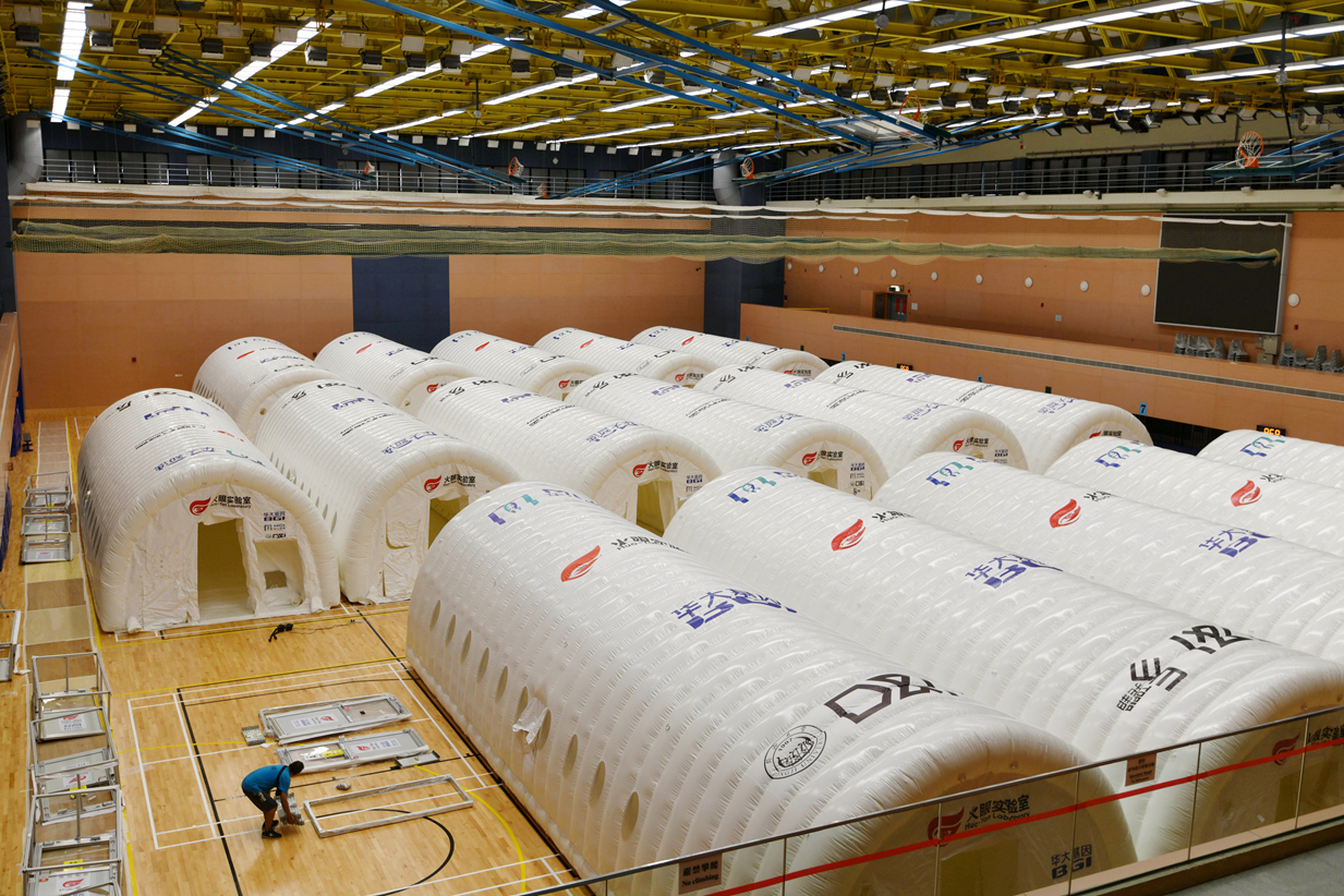在中山紀念公園體育館設立的「臨時氣膜實驗室」已大致準備就緒。中通社
