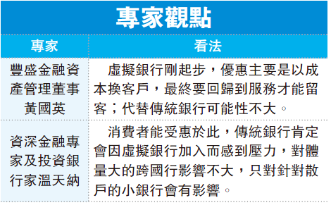 黃國英說:「虛擬銀行目前剛營業,各種優惠吸引了不少人,但是這種主要是以成本換客戶,最後還是要回歸到服務上,才能實實在在留住客人。而且,消費者精打細算,那張卡有優惠就用那張,忠誠度低。」