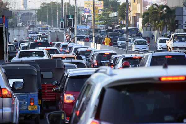 由於停电导致道路交通信号灯失灵,斯里兰卡科伦坡多条道路出现交通拥堵。