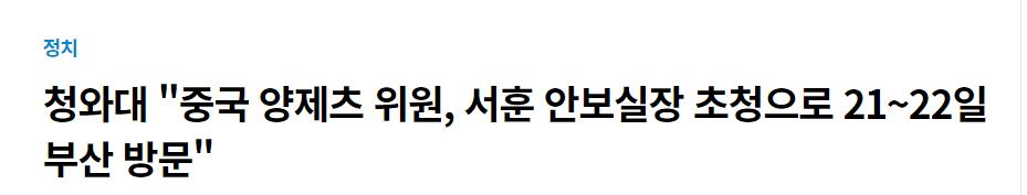 韩国總統府青瓦台表示,楊潔篪此番受青瓦台國家安保室長徐薰邀請到訪,雙方将于星期六會晤並舉行午餐會,就中韩防疫合作、加強高層交流、朝鮮半島及國際局勢等各問題交換意見。报道指,會談亦有可能討論中國國家主席習近平訪韓事宜。