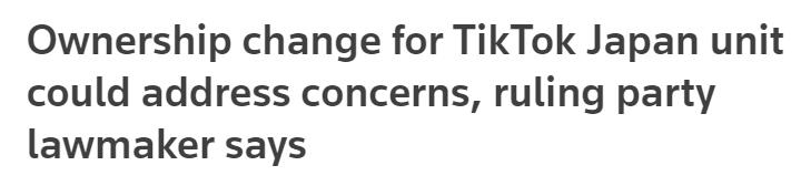 据路透社刚刚消息,一名日本执政党官员表示,改变TikTok日本业务的所有权可能是解决对该应用安全担忧的方法之一。
