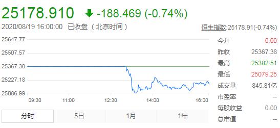 港股因8號風球今早休市,改發3號風球後,於下午1時30分復市。恒生指數開報25359點,跌8點;隨後出現一波快速下跌,跌幅擴至約240點,報25124點,之后維持窄幅震蕩,截至收盤,恒生指數報25178.91點,下跌188.46,跌幅0.74%。國企指數收盤下跌112.11點,跌幅為1.08%,報收10313.31點;紅籌指數收盤下跌20.72點,跌幅為0.5%,報收4129.12點。南向資金當日淨流出9.65億元。
