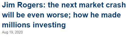 羅傑斯称,股市自3月以来大涨,主要是由於量化宽鬆导致债务累积,「六个月前,美国就是世界历史上最大的债务国。从来没有人欠过这么多债。从那以後,美国又增加了数万亿美元的债务。如果你给我数万亿美元,我就会给你一个非常、非常好的机会。」