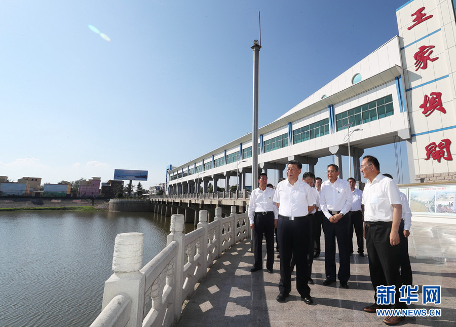 18日下午,习近平在阜阳市阜南县王家坝闸考察,了解安徽省防汛工作及王家坝开闸分洪情况。 新华社