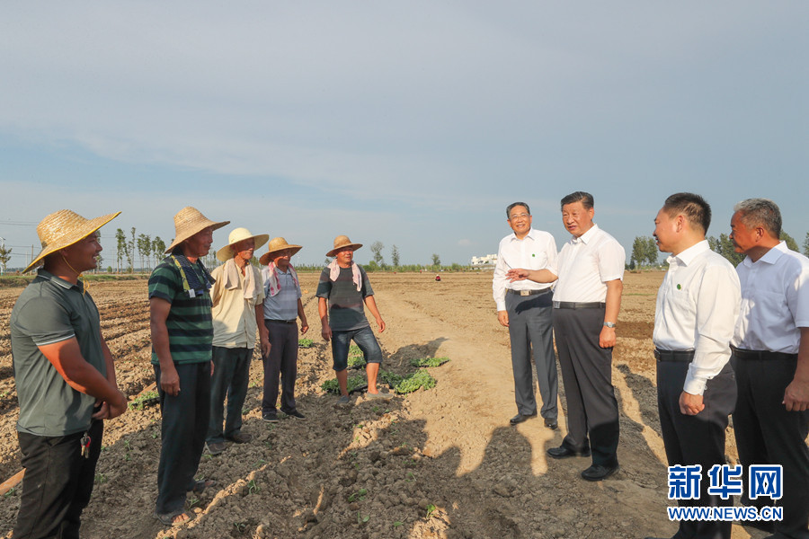 18日下午,习近平在阜阳市阜南县蒙洼蓄洪区,同正在退水地块补种蔬菜的乡亲们亲切交流。 新华社