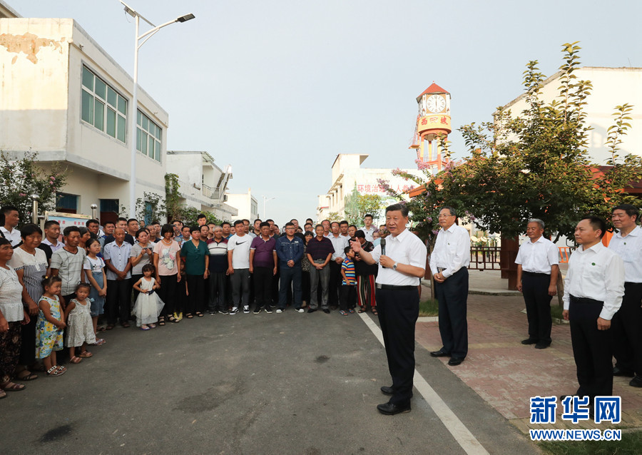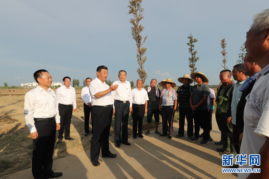 18日下午,习近平在阜阳市阜南县蒙洼蓄洪区曹集镇利民村西田坡庄台,看望慰问受灾群众。 新华社