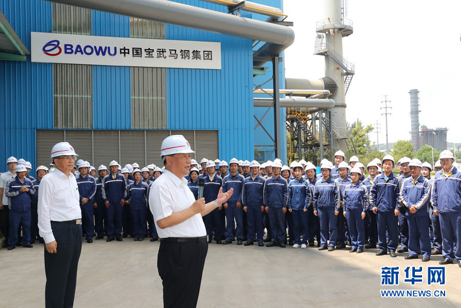 马鞍山市因钢而设、因钢而兴。习近平来到中国宝武马钢集团,了解企业生产经营情况,察看重点产品展示。随后,习近平走进优质合金棒材车间,察看加热炉、初轧机、中轧机等运行情况。车间外,企业劳动模范、工人代表看到总书记来了,热烈鼓掌。习近平亲切地同大家打招呼。他指出,疫情发生以来,马钢克服困难,率先复工复产,上半年产量和营收同比实现「双升」。要抓住深化国有企业改革和推动长三角一体化发展的重大机遇,加强新材料新技术研发,开发生产更多技术含量高、附加值高的新产品,增强市场竞争力。劳动模范是共和国的功臣,要大力弘扬劳模精神。
