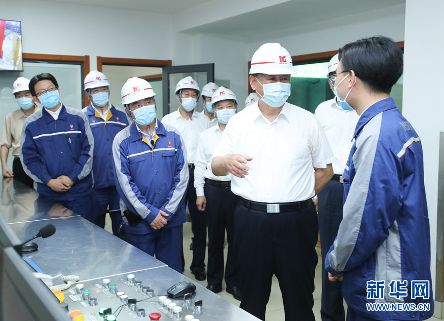 19日上午,习近平在马鞍山市中国宝武马钢集团优质合金棒材车间考察,了解企业复工复产和经营情况。 新华社