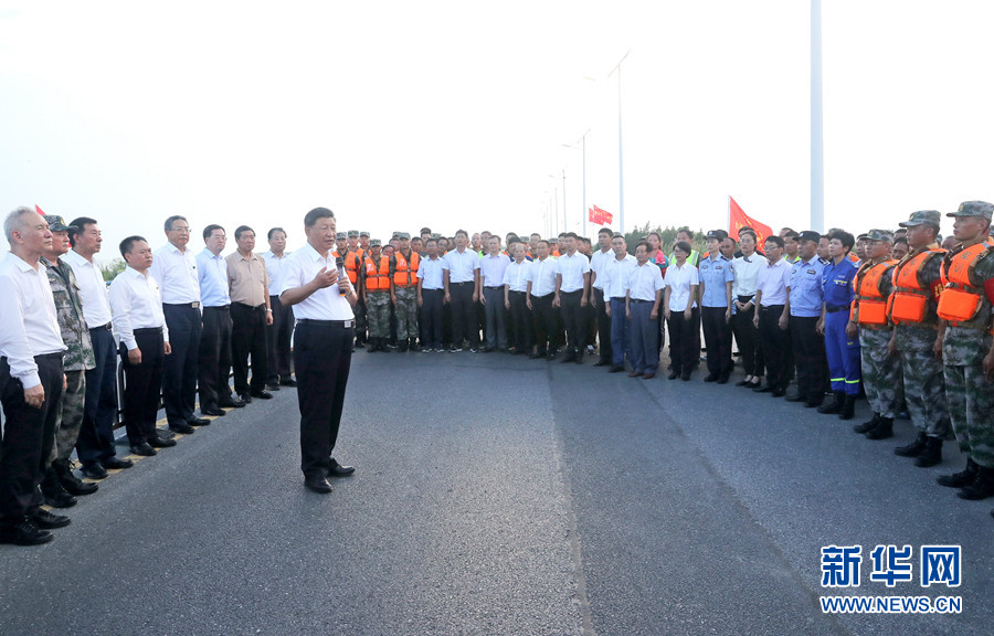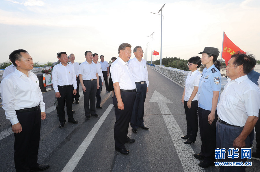 大堤上,习近平亲切看望慰问了在防汛抗洪救灾斗争中牺牲同志的家属、防汛抗洪一线人员、先进典型代表和参加抗洪抢险的部队官兵,并向全国奋战在防汛抗洪救灾一线的同志们表示诚挚的问候。他强调,今年入汛以来,南北方江河湖泊接连出现超警戒水位险情。广大干部群众和人民解放军、武警官兵坚决响应党和政府号召,发扬不怕累苦、不怕疲劳、不怕牺牲的精神斗志,坚守在防汛抗洪救灾第一线,涌现了许多先进典型和感人事迹,展现了中国人民众志成城、顽强拼搏、敢于胜利的英雄气概,书写了洪水无情人有情的人间大爱。党和人民感谢你们!