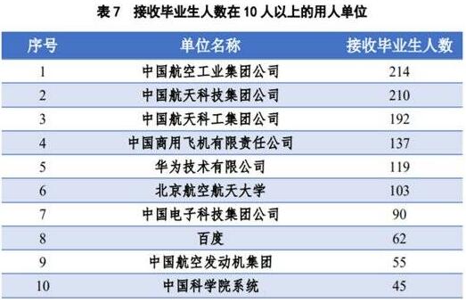 我们如果看每年985高校毕业生就业报告,有没有发现这四家高科技企业是985理工高校毕业生的热门去处?你看数据分析就是这么有趣,很多事情就能这样联系起来了,例如下图是北航2019届毕业生的就业去向单位,这四家公司都排在前七位。
