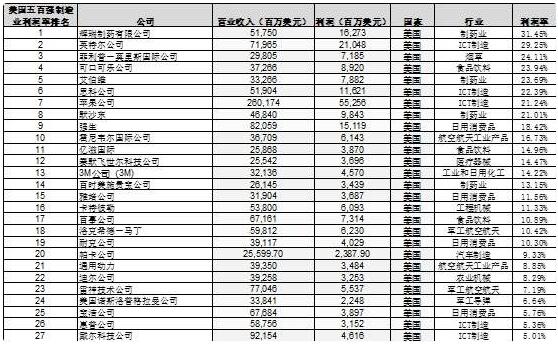 美国这27家高利润制造业企业和中国的7家高利润制造业企业比较下,差距非常明显。