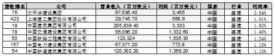 基建是个脏活累活,而且利润率还很低,上榜的中国基建公司利润率普遍在1%~2%之间,但是基础设施对一个国家非常重要,即使利润率低也必须要维持一个庞大的基建队伍,这是保持国家竞争力立于不败之地的非常重要的要素。