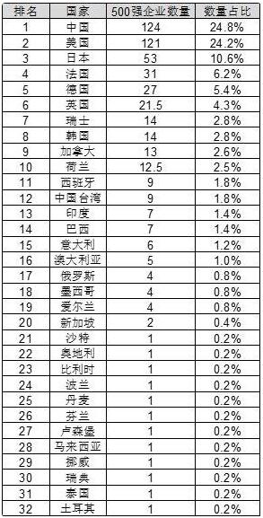 不过也要注意一点,全球总共只有32个国家和地区(加个地区是因为有个台湾)有世界五百强企业,可见全球大部分国家,是几乎没有什么机会参与全球竞争,或者出现在经济新闻头条的。