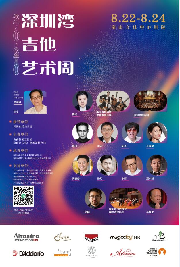 8月22日,2020深圳灣結他藝術周將在深圳南山區文體中心劇院拉開帷幕。藝術周活動將從8月22日持續到8月24日,10餘位享譽世界的古典結他藝術家將為大家呈獻4場公益高水平音樂會,一展古典結他獨特迷人的藝術魅力。