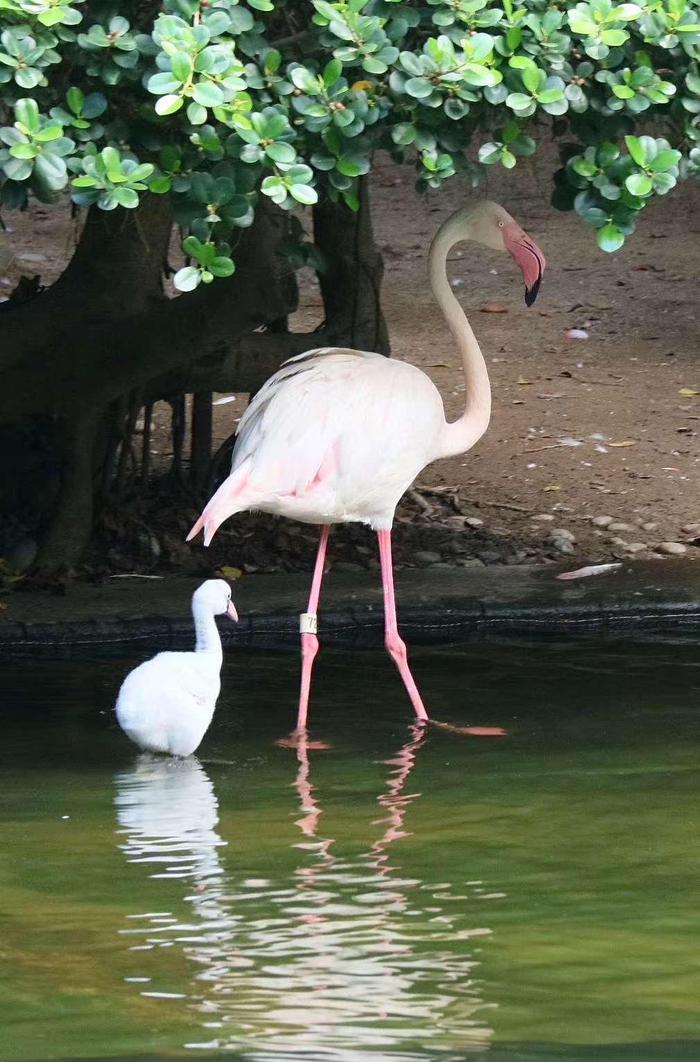 位于九龙公园内的鸟湖包括大型红鹳池塘和较小的水禽池塘。两个池塘均遍植花木,合共饲养了约5个不同品种的130多只雀鸟,其中以红鹳最引人注目。最近鸟湖有新成员加入,就是出生不久的小红鹳,牠们跟大红鹳在湖入游来游去,吸引不少市民围观。(冯瀚文摄)