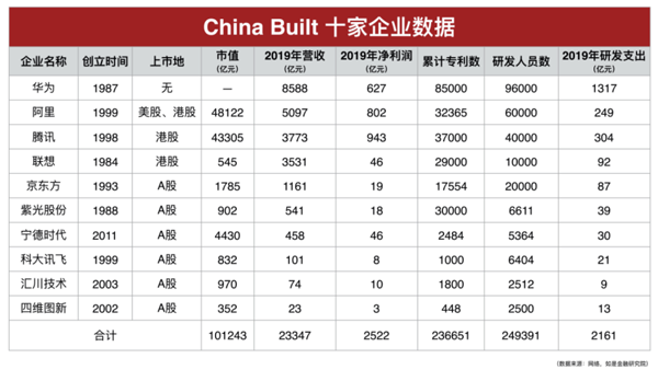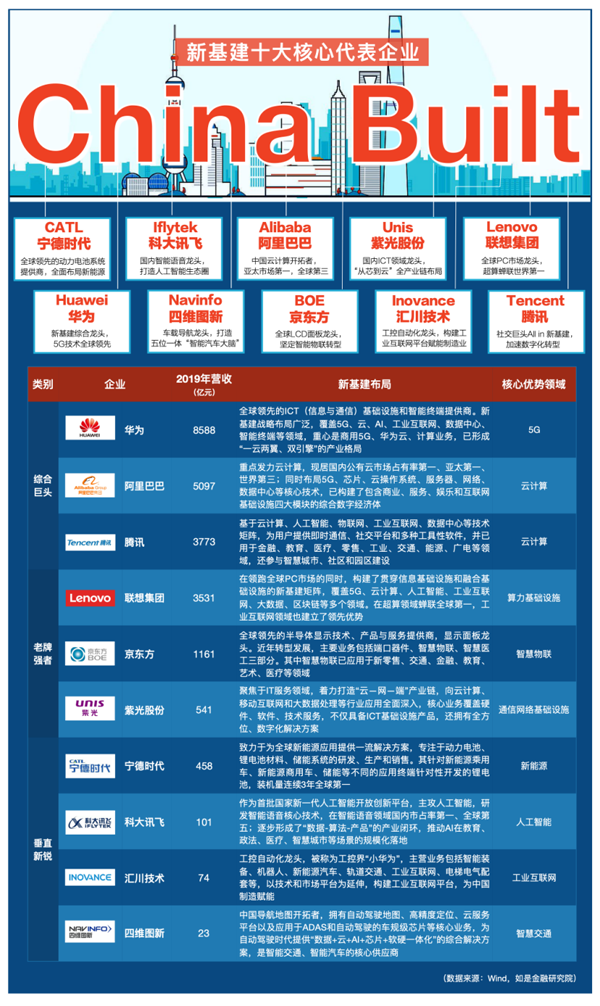 上述10家核心代表企業的英文名稱首字母共同組成「China Built」,代表推動新基建落地的企業力量。