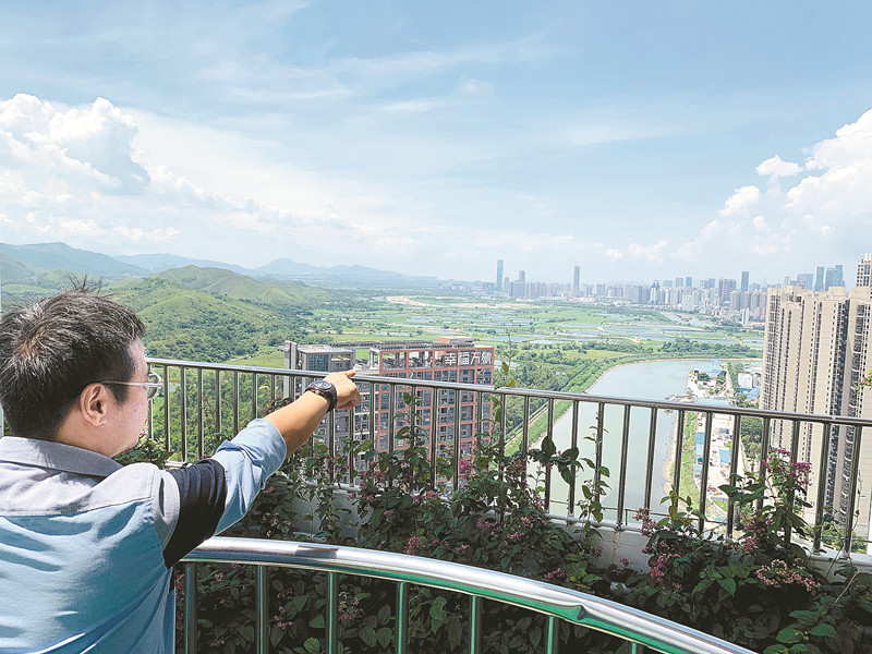 「港逸豪庭擁有着非常舒適且便捷的居住環境,步行十分鐘就可抵達地鐵1號線和9號線,五分鐘能抵達燈火輝煌的和平路和嘉賓路。其次,我們開車出門一拐彎就能上濱河路,其他小區要塞很多燈才能上濱河路,那些不都是時間嗎?」跟隨王紀明,記者來到頂樓43層空中花園,鳥瞰整個羅湖,繁華的蔡屋圍景象盡收眼底。千帆過盡褪去了內心的繁華,此刻平靜下來的王紀明感慨萬千:「你可以感受深圳的精彩,但你想安靜下來的話,家就是港灣。眺望一河之隔的香港,欣賞深圳美麗的濱河夜景,尤其是晚高峰的車燈加上傍晚綺麗的夕陽,晚霞如錦,璀璨奪目,心境都格外通透。」王紀明話語中無不流露出滿滿的幸福感、獲得感和滿足感。