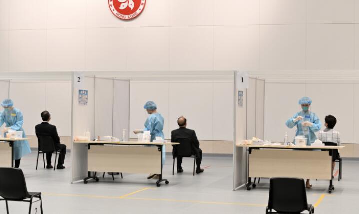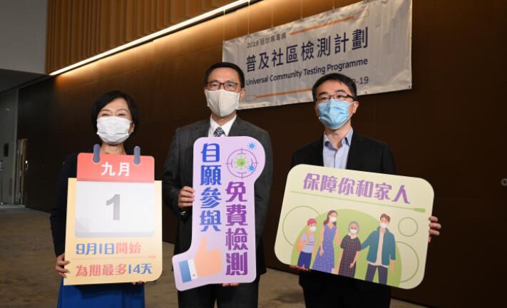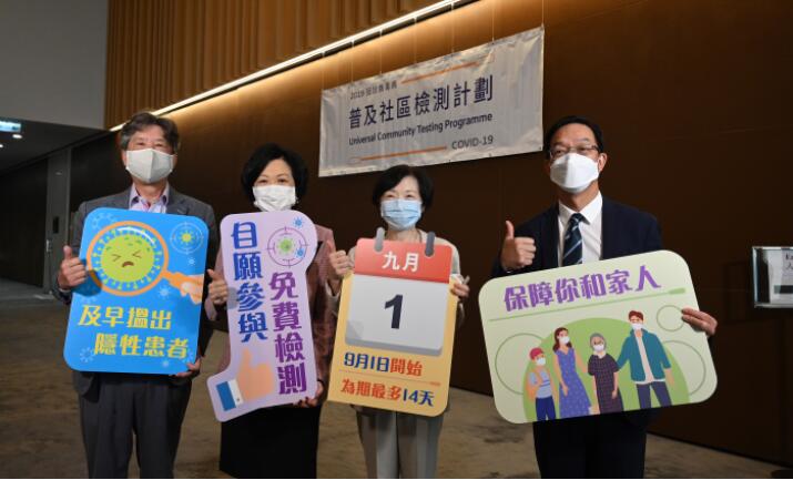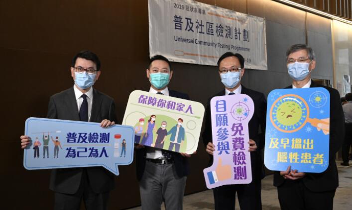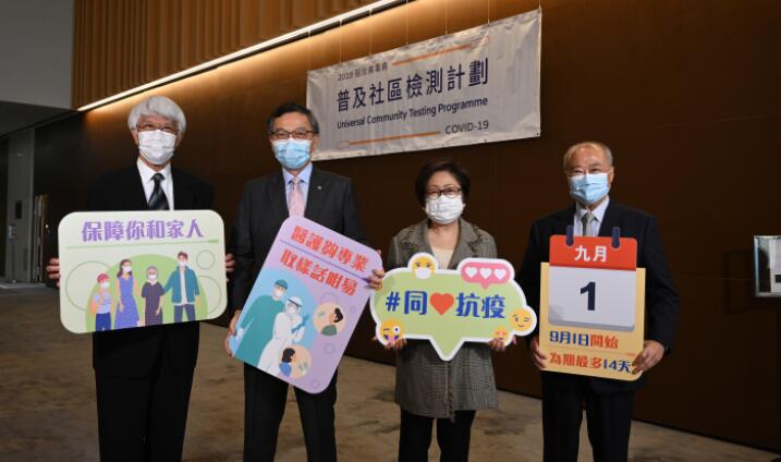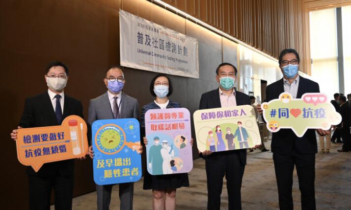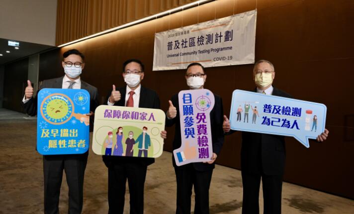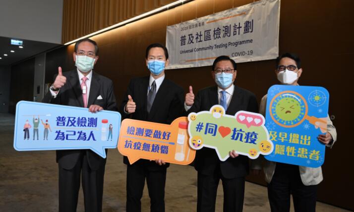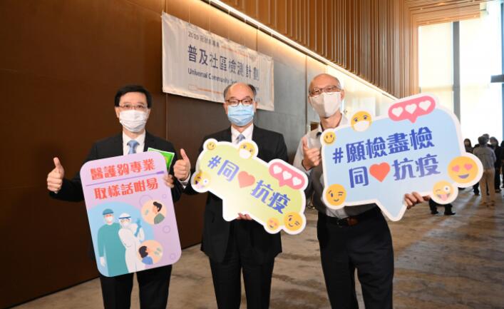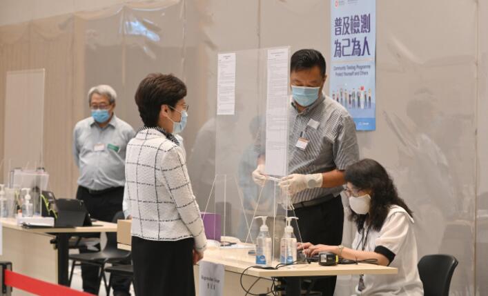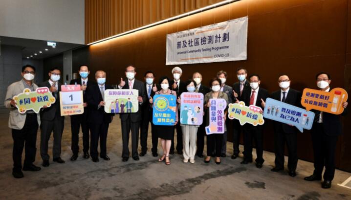 行政长官林鄭月娥今日出席行政會議前,率各司局長在政府总部參加普及社区检测计划,一衆行政會議成員也先後做測試,並呼籲市民「為己為人,參與檢測」。