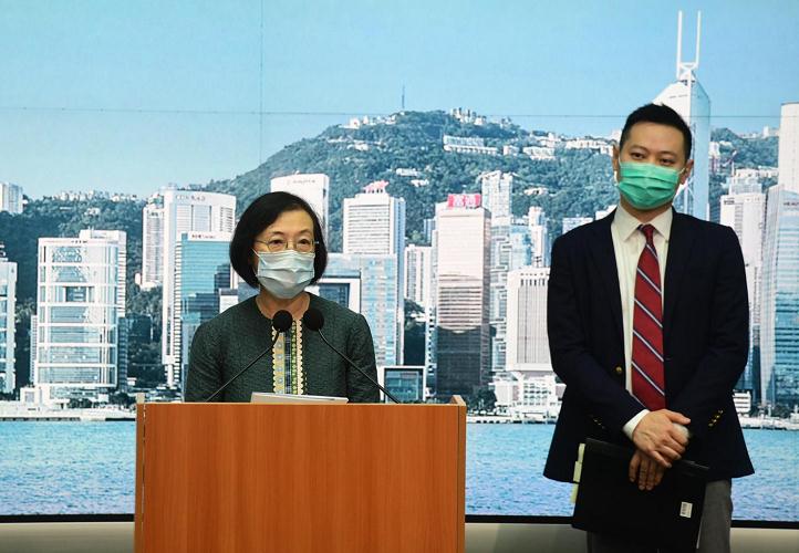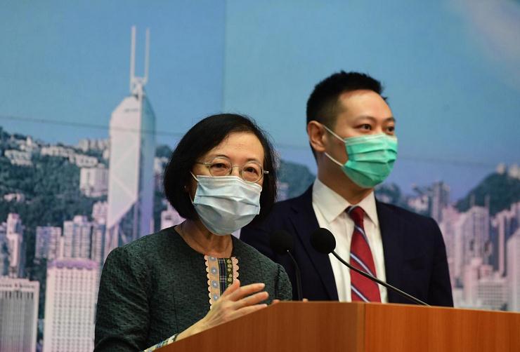 食衞局局長陳肇始聯同民政事務局局長徐英偉2日下午公布港府防疫措施最新安排。记者崔俊良攝