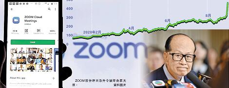 早年獲長和系創辦人李嘉誠「加持」、在美國納斯達克上市的視像通訊軟件公司ZOOM,在中期業績公布後股價狂飆逾40%,帶挈李嘉誠手上ZOOM股份的市值急增32億美元(約248.01億港元),至110億美元(約852.53億港元)。