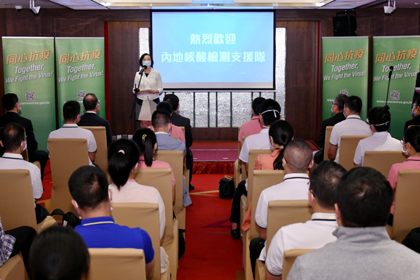 特區政府今日(3日)歡迎第三批內地核酸檢測支援隊抵港,並再次感謝中央政府組成和委派支援隊來港,短時間內大幅提升香港的檢測能力,讓特區政府得以推出大規模的普及社區檢測計劃,為市民提供「願檢盡檢」的檢測服務。