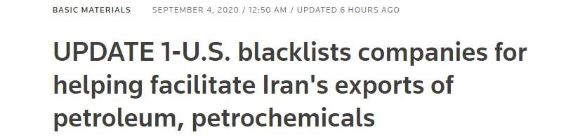 美財政部宣布制裁6間公司,涉嫌協助伊朗運載和出售石化製品,並支持被美國列進黑名單的香港公司眾祥石化有限公司。美國務院宣布制裁5間公司,指控他們參與伊朗石油和石化工業相關的交易,包括3名公司高層也被制裁。