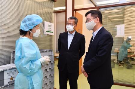 陈茂波日前赴位於科學園的社區檢測中心,視察運作情況並給前線工作人員打氣。图源:陈茂波网志