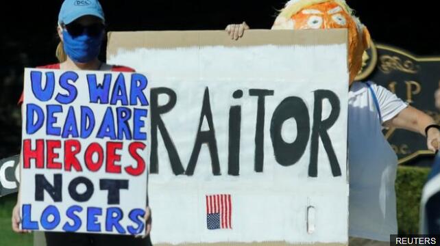 示威人士抗议特朗普有关越战美兵是傻瓜的说法。图源:路透社